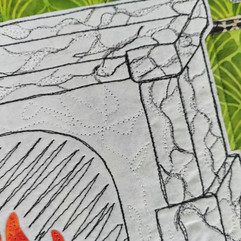 I used all three of the Aurifil thread to create the marble effect on my fireplace, and completed the top quilt with free motion quilting the main fireplace to help it stand out